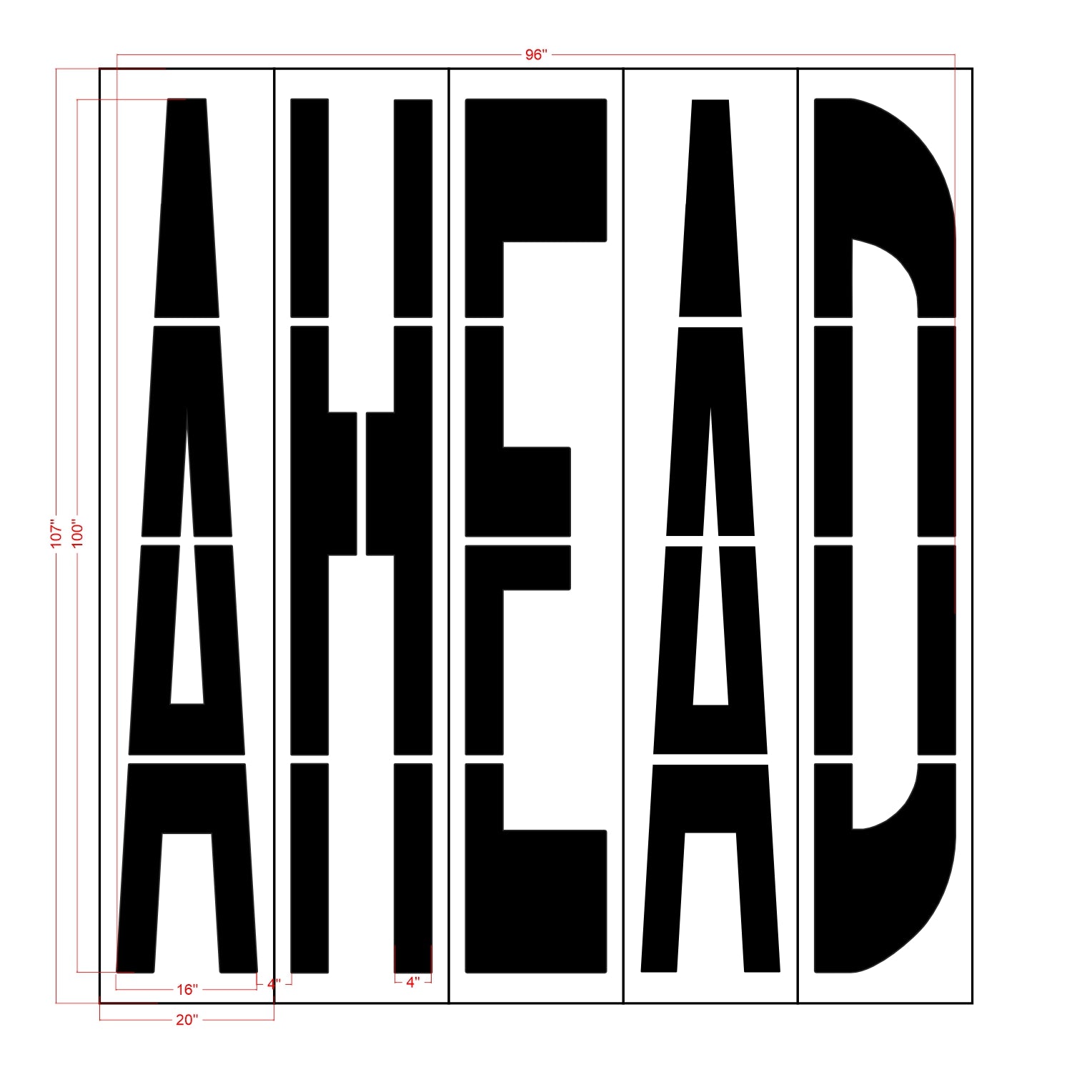 This 100" Mississippi DOT AHEAD Stencil is the number one seller for all of the 100" wording stencils. Typically used on roadways or large parking lots, this stencil is designed to be viewed at moderate to high speed. This marking can be used directly in front of a stop line, many hundreds of feet away as a "STOP AHEAD", or as a warning anywhere in between. The stencil is made specifically to meet the specifications for the Department of Transportation's Manual on Uniform Traffic Control Devices or MUTCD. All 1-800-Stencil’s are professional quality and made from either Light or Pro-Grade LDPE, Aluminum, or optional UHMW plastic to all last for years of professional use.