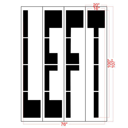 This 100" Mississippi DOT LEFT Stencil is the number one seller for all of the 100" wording stencils. Typically used on roadways or large parking lots, this stencil is designed to be viewed at moderate to high speed. This marking can be used directly in front of a stop line, or as a warning anywhere in between. The stencil is made specifically to meet the specifications for the Department of Transportation's Manual on Uniform Traffic Control Devices or MUTCD. All 1-800-Stencil’s are professional quality and made from either Light or Pro-Grade LDPE, Aluminum, or optional UHMW plastic to all last for years of professional use.