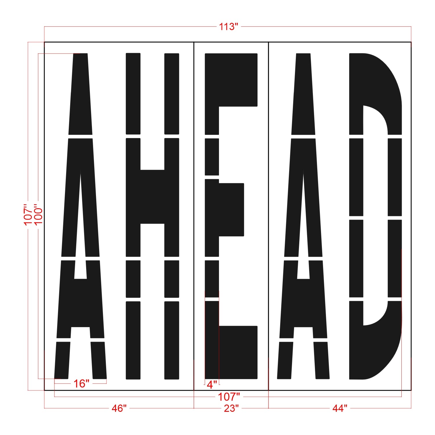 This 100" South Carolina DOT AHEAD Stencil is the number one seller for all of the 100" wording stencils. Typically used on roadways or large parking lots, this stencil is designed to be viewed at moderate to high speed. This marking can be used directly in front of a stop line, many hundreds of feet away as a "STOP AHEAD", or as a warning anywhere in between. The stencil is made specifically to meet the specifications for the Department of Transportation's Manual on Uniform Traffic Control Devices or MUTCD. A ll 1-800-Stencil’s are professional quality and made from either Light or Pro-Grade LDPE, Aluminum, or optional UHMW plastic to all last for years of professional use.