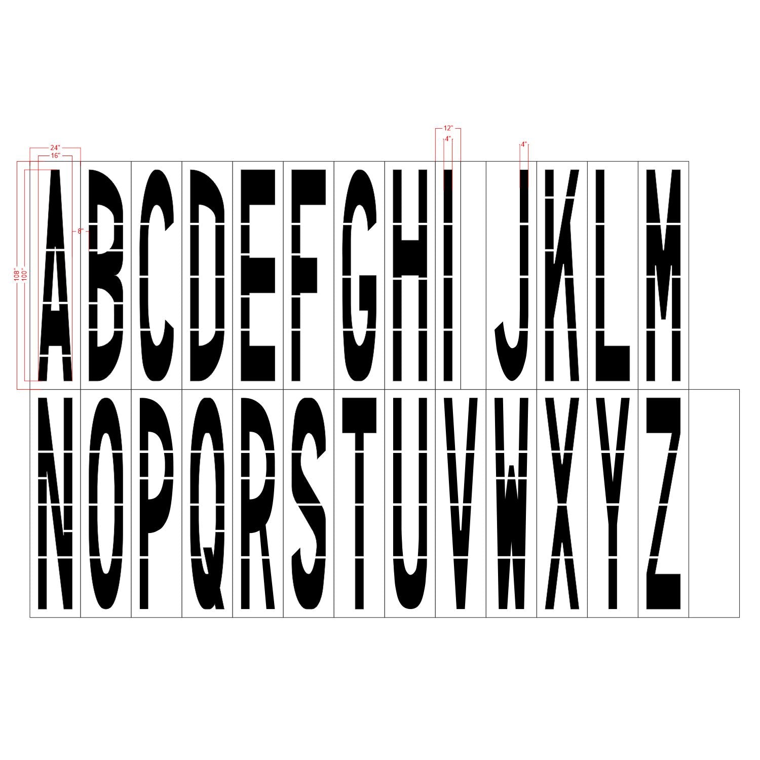 The 100 inch Wyoming DOT Alphabet Kit stencil is a great set to have if you paint a great deal of 100" words, or you like to be prepared on the job site. This set is designed with the standard 4" Stroke. Typically used on roadways or large parking lots, this stencil is designed to be viewed at moderate to high speed. This stencil kit meets the FHWA's MUTCD specs (manual for uniform traffic control devices) and is compliant for most State DOT's. A ll 1-800-Stencil’s are professional quality and made from either Light or Pro-Grade LDPE, Aluminum, or optional UHMW plastic to all last for years of professional use.