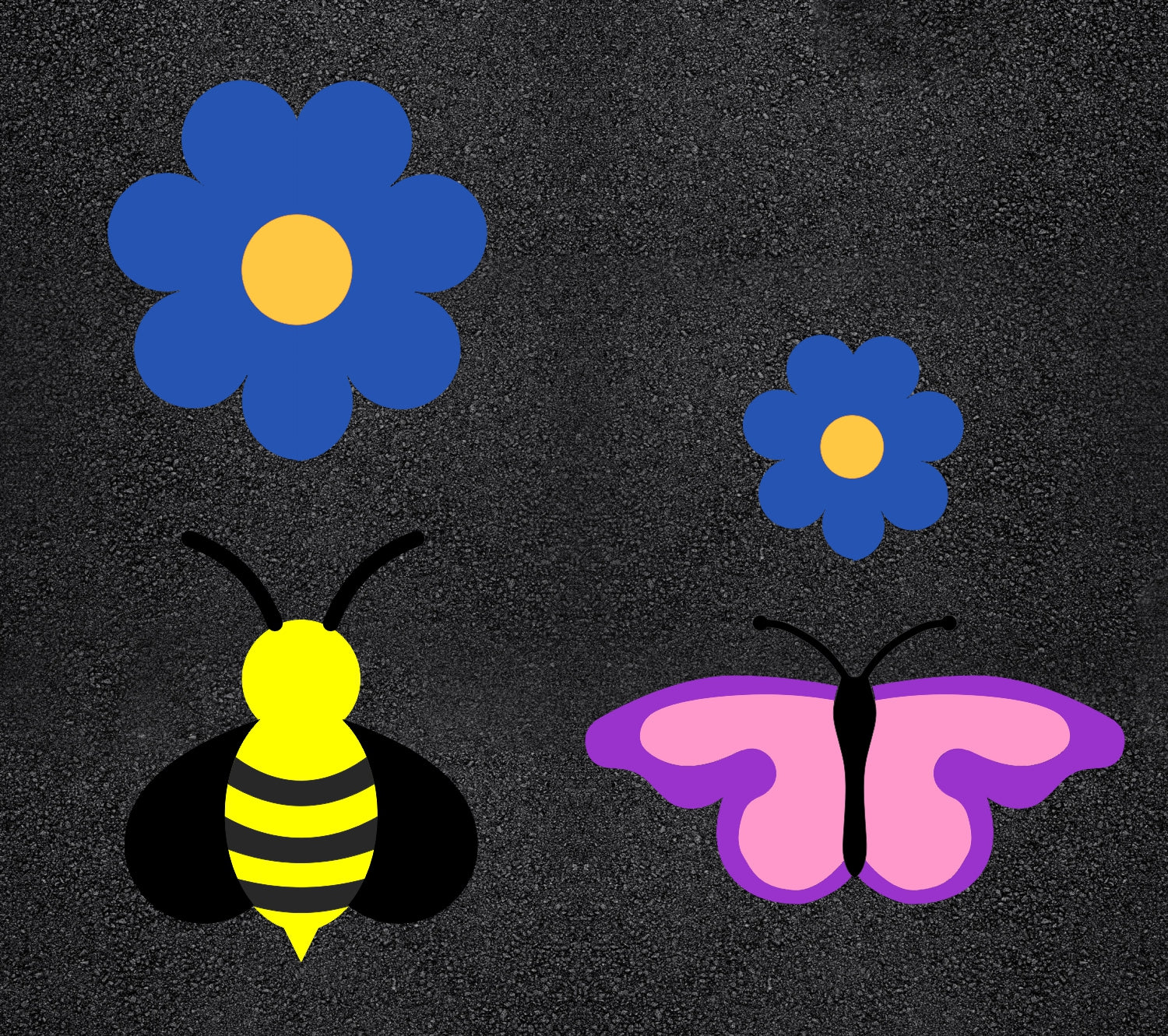 Calling all schools and playground enthusiasts! Transform your playground into a vibrant and engaging space with our 110 by 137 inch "Butterfly and Bee" Stencil! With our wide selection of playground stencils, you can bring your school playground to life. From hopscotch and animal tracks to educational games, our stencils offer endless possibilities to foster active play and learning. Our playground stencils are specifically designed with schools in mind, meeting safety standards and encouraging physical activity, social interaction, and imagination. All 1-800-Stencil’s are professional quality and made from either Light or Pro-Grade LDPE, Aluminum, or optional UHMW plastic to all last for years of professional use.