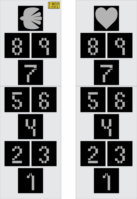 Calling all schools and playground enthusiasts! Transform your playground into a vibrant and engaging space with our 135 by 37 inch "Retro Hopscotch" Stencil! With our wide selection of playground stencils, you can bring your school playground to life. From hopscotch and animal tracks to educational games, our stencils offer endless possibilities to foster active play and learning. Our playground stencils are specifically designed with schools in mind, meeting safety standards and encouraging physical activity, social interaction, and imagination. All 1-800-Stencil’s are professional quality and made from either Light or Pro-Grade LDPE, Aluminum, or optional UHMW plastic to all last for years of professional use.