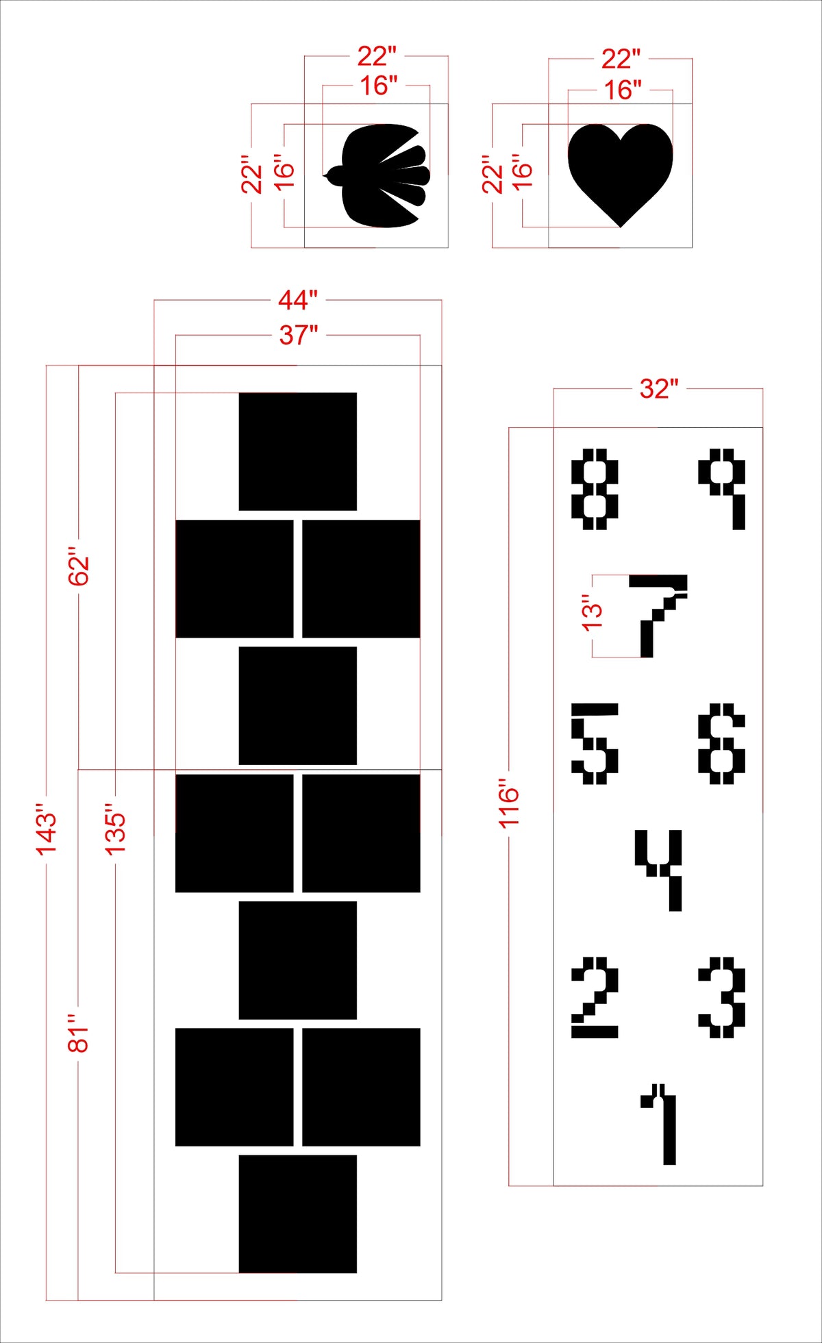 135"x37" Retro Hopscotch Stencil SKU: 0575-042