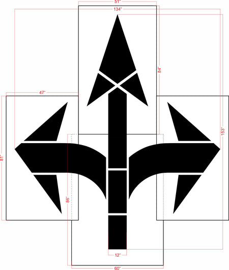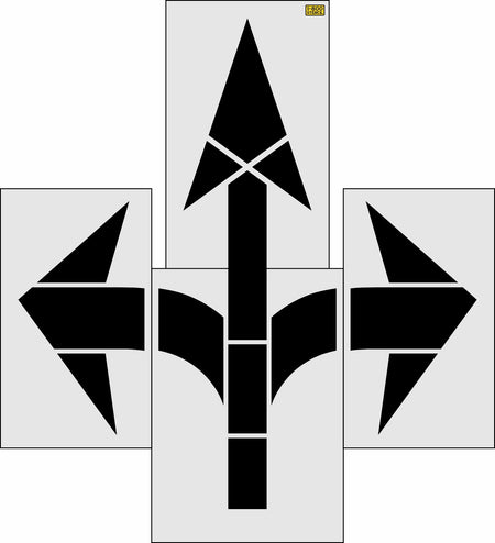 Pavement markings play a crucial role in directing, cautioning, and regulating traffic through the use of words, symbols, and arrows. These visible markings on the road surface are essential for guiding drivers, warning them of potential hazards, and ensuring proper traffic flow. That is why this 153" North Carolina DOT Three Way Arrow Stencil is made specifically to meet the specifications for the Department of Transportation's Manual on Uniform Traffic Control Devices or MUTCD. All 1-800-Stencil’s are professional quality and made from either Light or Pro-Grade LDPE, Aluminum, or optional UHMW plastic to all last for years of professional use.