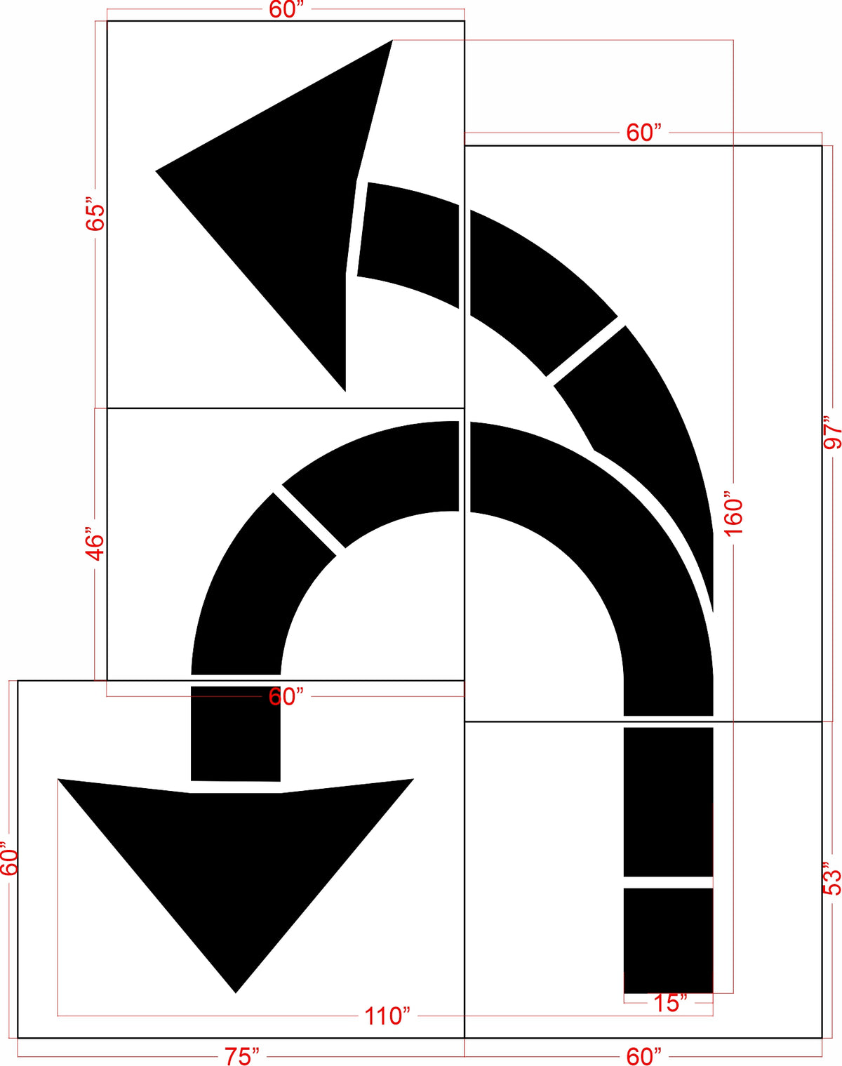 160" Georgia DOT Left and U-Turn Arrow Stencil SKU: 5GA09