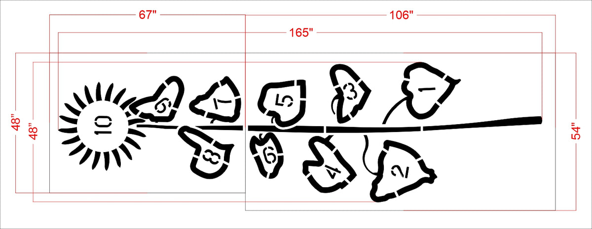 Calling all schools and playground enthusiasts! Transform your playground into a vibrant and engaging space with our 165 by 48 inch "Sunflower Hopscotch" Stencil! With our wide selection of playground stencils, you can bring your school playground to life. From hopscotch and animal tracks to educational games, our stencils offer endless possibilities to foster active play and learning. Our playground stencils are specifically designed with schools in mind, meeting safety standards and encouraging physical activity, social interaction, and imagination. All 1-800-Stencil’s are professional quality and made from either Light or Pro-Grade LDPE, Aluminum, or optional UHMW plastic to all last for years of professional use.