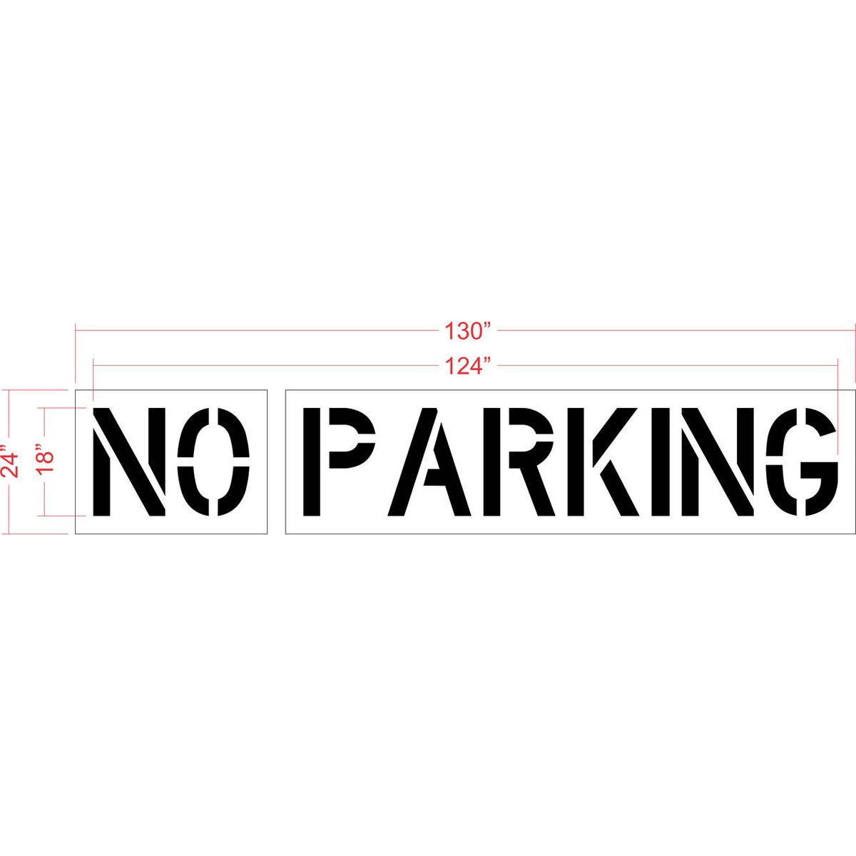 The 18 inch NO PARKING stencil is offered by 1-800-Stencil with our standard 3" overspray. At 18", this NO PARKING stencil is a good option for many large parking lot jobs. All 1-800-Stencil’s are professional quality and made from either Light or Pro-Grade LDPE, Aluminum, or optional HDPE plastic to all last for years of professional use.