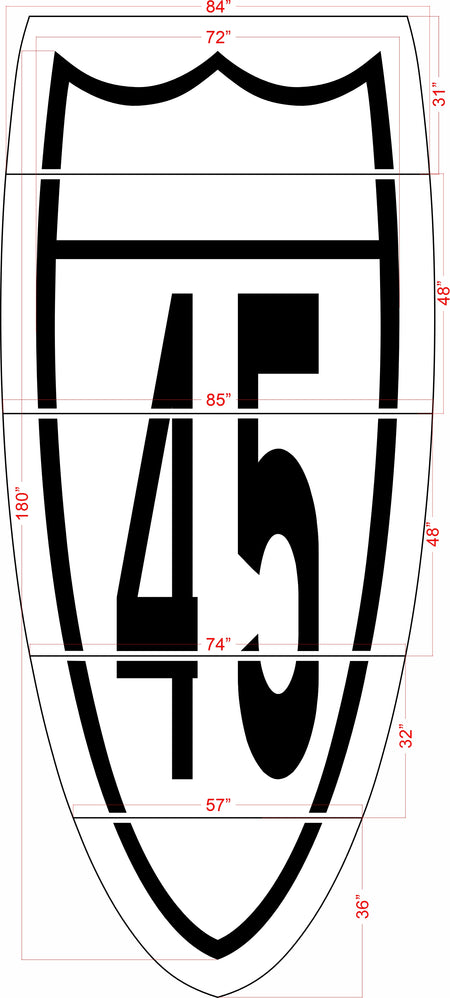 The 180 inch Houston DOT 45 State Interstate Shield Stencil follows the State Louisiana's Department of Transportation specification for yield lines in pavement roads. It is very easy to clean and reuse, so don't worry about having to buy a new one every painting job you have. All 1-800-Stencil’s are professional quality and made from either Light or Pro-Grade LDPE, Aluminum, or optional UHMW plastic to all last for years of professional use. All 1-800-Stencil’s are professional quality and made from either Light or Pro-Grade LDPE, Aluminum, or optional UHMW plastic to all last for years of professional use.