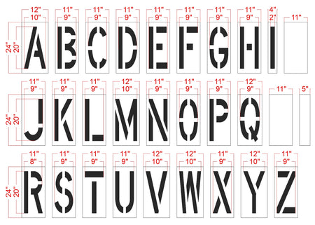 20"x9" Alphabet Kit Stencil SKU: 0370-N20/0371-N20