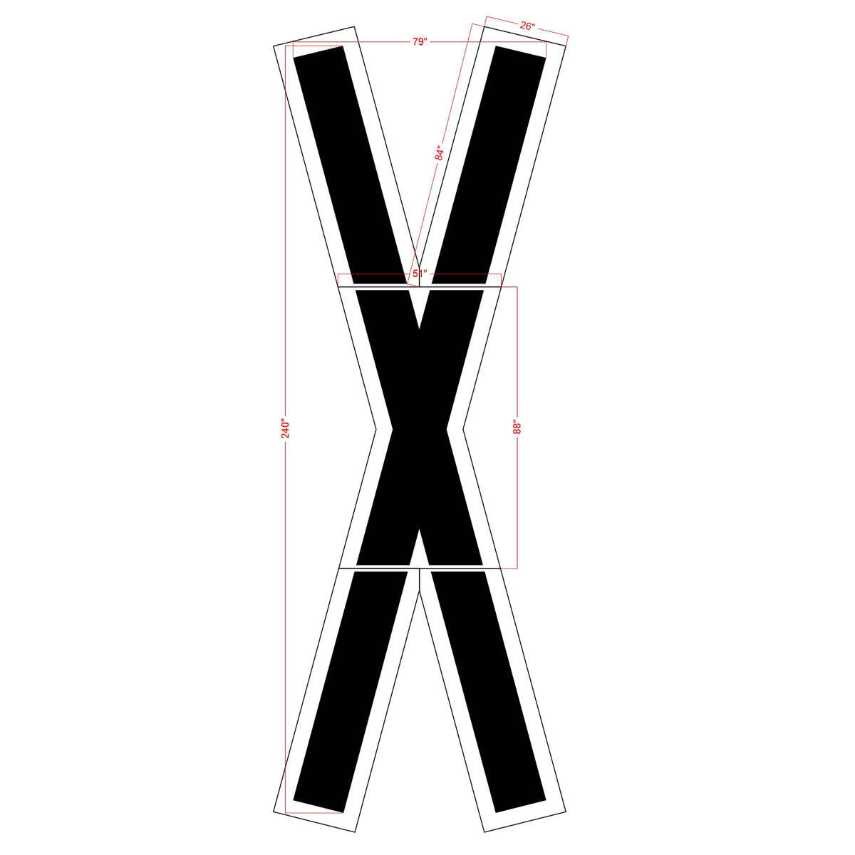 This 240" North Dakota DOT Railroad Crossing Symbol complies with the specification and standards of the state's Department of Transportation. The overall height of the "X" is 240 inches. A ll 1-800-Stencil’s are professional quality and made from either Light or Pro-Grade LDPE, Aluminum, or optional UHMW plastic to all last for years of professional use.