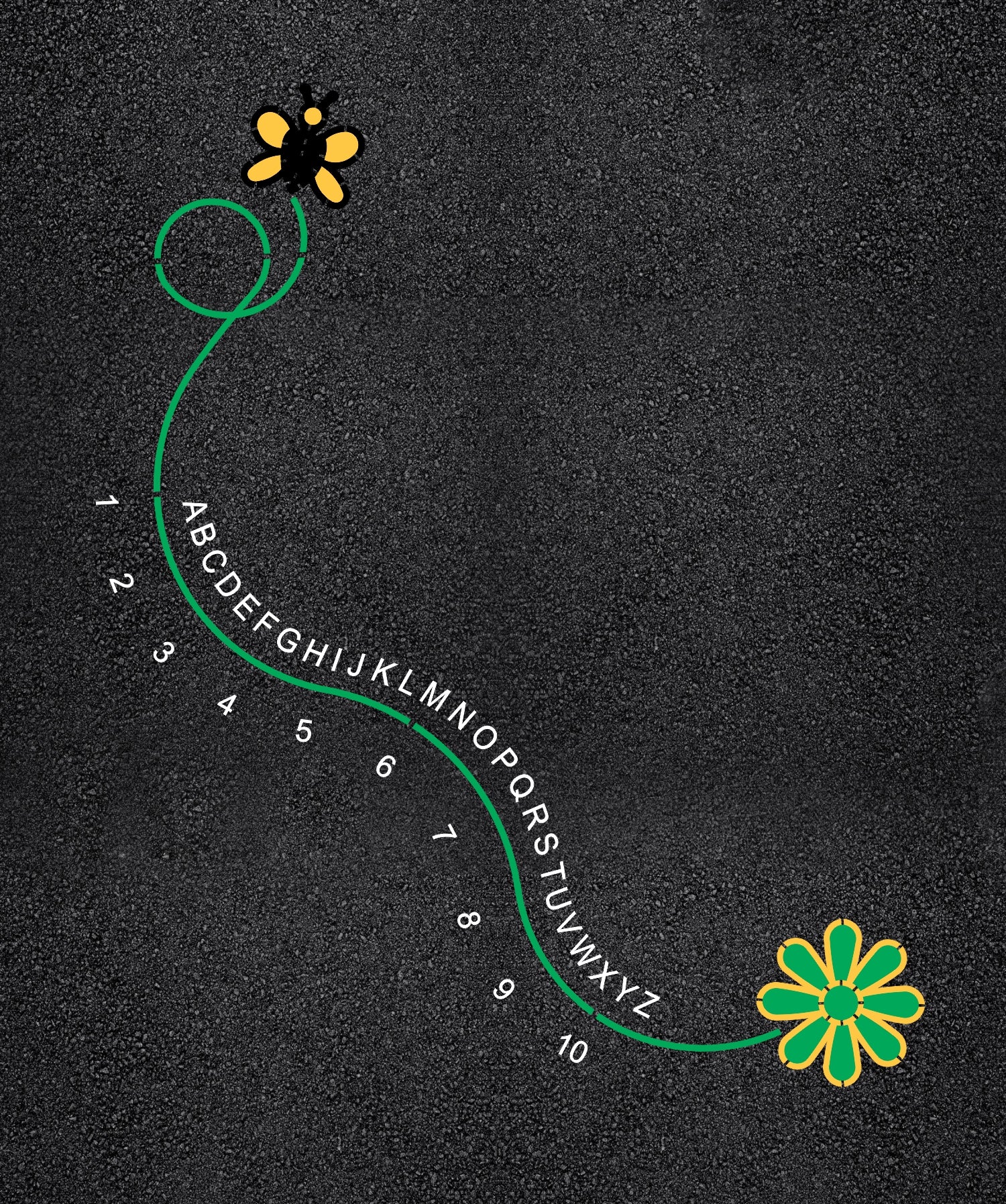 Calling all schools and playground enthusiasts! Transform your playground into a vibrant and engaging space with our 245 by 330 inch "Painted Bee Alphabet" Stencil! With our wide selection of playground stencils, you can bring your school playground to life. From hopscotch and animal tracks to educational games, our stencils offer endless possibilities to foster active play and learning. Our playground stencils are specifically designed with schools in mind, meeting safety standards and encouraging physical activity, social interaction, and imagination. All 1-800-Stencil’s are professional quality and made from either Light or Pro-Grade LDPE, Aluminum, or optional UHMW plastic to all last for years of professional use.Specifications