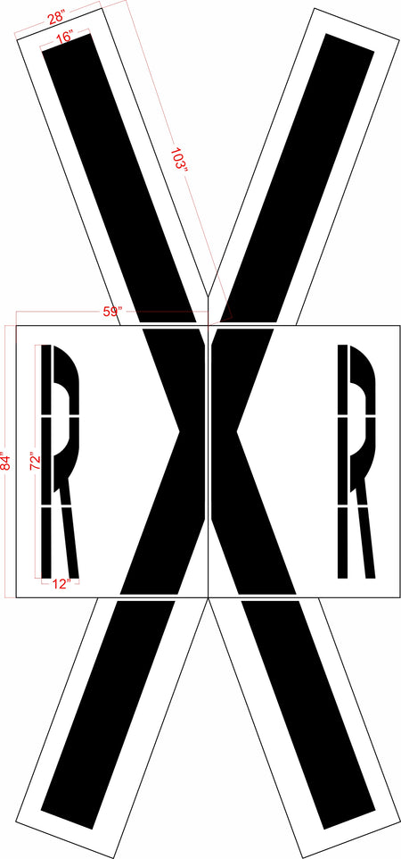 This 246" North Carolina DOT Railroad Crossing Kit complies with the specification and standards of the state's Department of Transportation. The height of each "R" is 6 ft., and the overall height of the "X" is 246 inches. All 1-800-Stencil’s are professional quality and made from either Light or Pro-Grade LDPE, Aluminum, or optional UHMW plastic to all last for years of professional use.