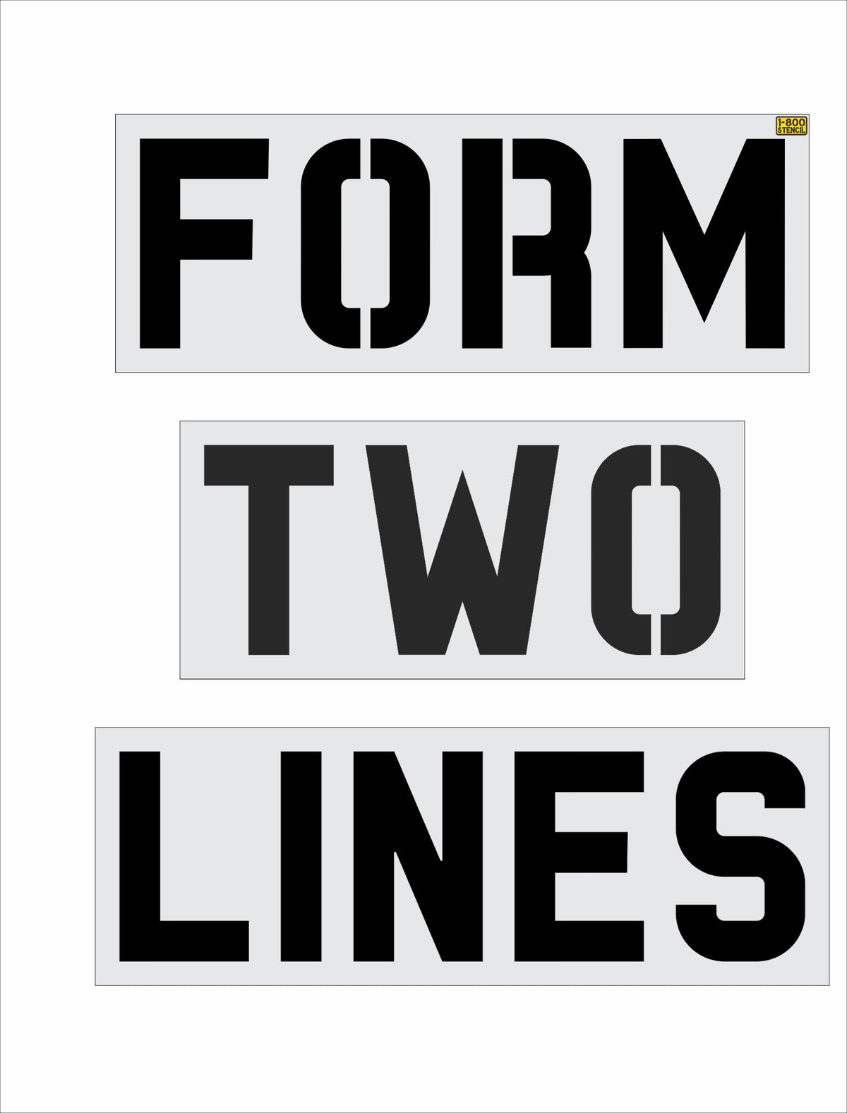 This Wegmans FORM TWO LINES stencil is to be used on all Wegmans grocery store properties for phrasing purposes, it can be used to maintain proper etiquette in Wegmans establishments. All 1-800-Stencil’s are professional quality and made from either Light or Pro-Grade LDPE, Aluminum, or optional UHMW plastic to all last for years of professional use.