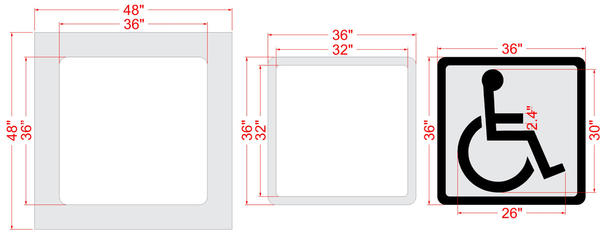 The 30 inch Handicap Stencil is a medium (3-piece) handicap with a solid wheel and with a 36" square solid border and a 36" background, that meets ADA (Americans with Disabilities Act) standards and some state/ local standards. This 30 inch Handicap Stencil is good for small handicap marking areas when it meets the state and local standards. All 1-800-Stencil’s are professional quality and made from either Light or Pro-Grade LDPE, Aluminum, or optional UHMW plastic to all last for years of professional use.