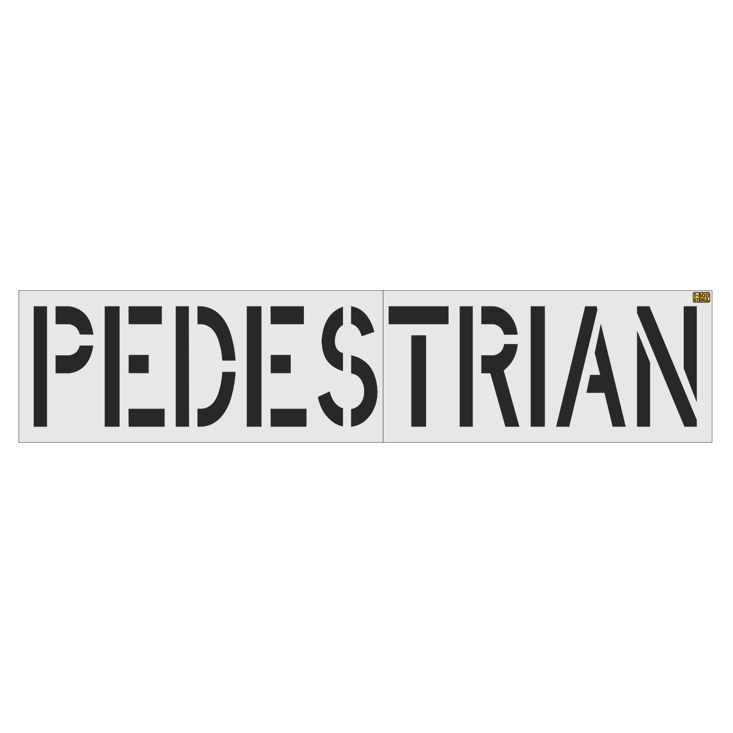 The 36 inch PEDESTRIAN stencil can be used to mark pedestrian only areas or no pedestrian areas. This 36" PEDESTRIAN stencil is adequate for roadways with speed limits 35 mph and faster, this stencil is suited for roadways and parking lots. All 1-800-Stencil’s are professional quality and made from either Light or Pro-Grade LDPE, Aluminum, or optional UHMW plastic to all last for years of professional use.