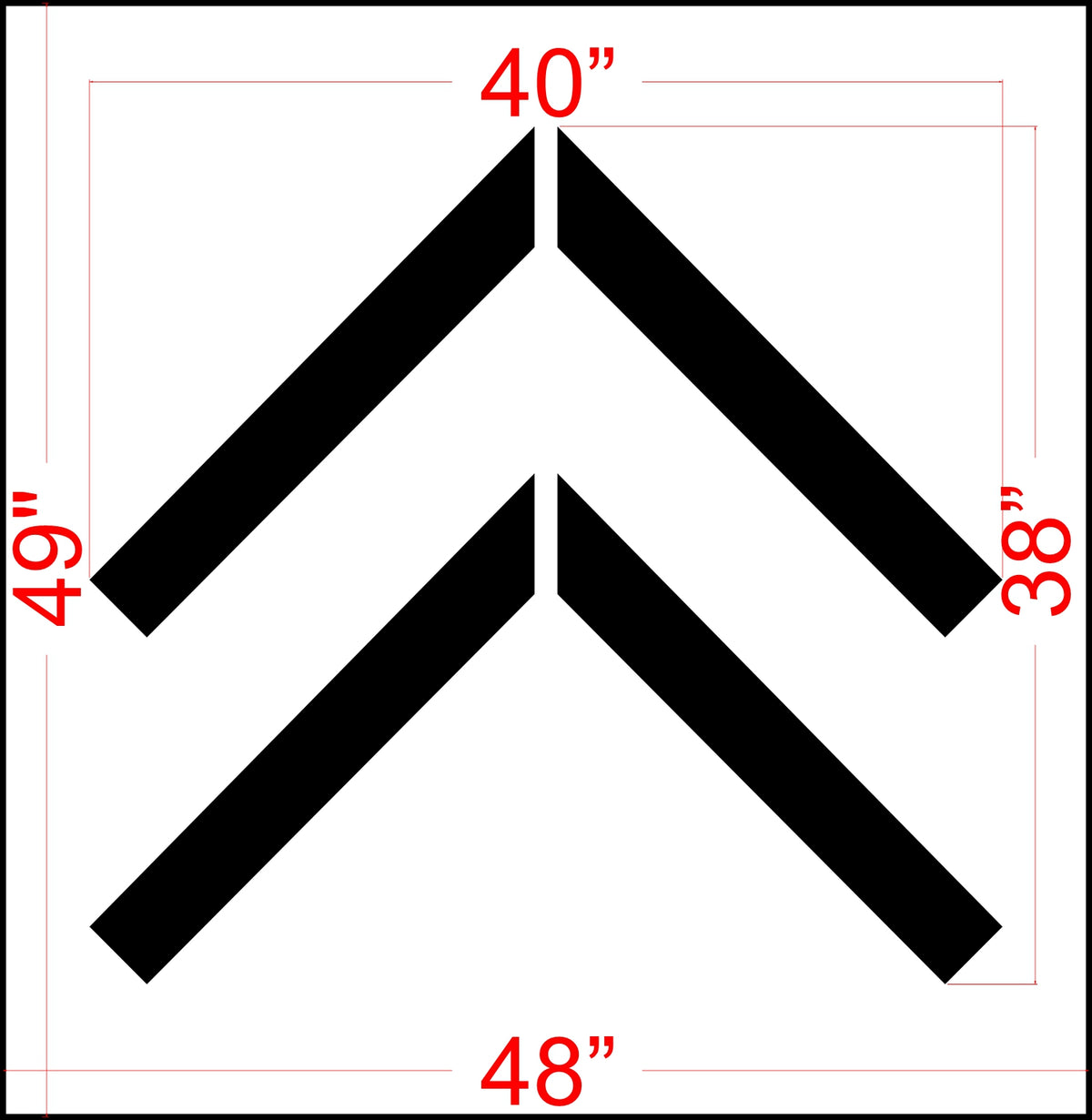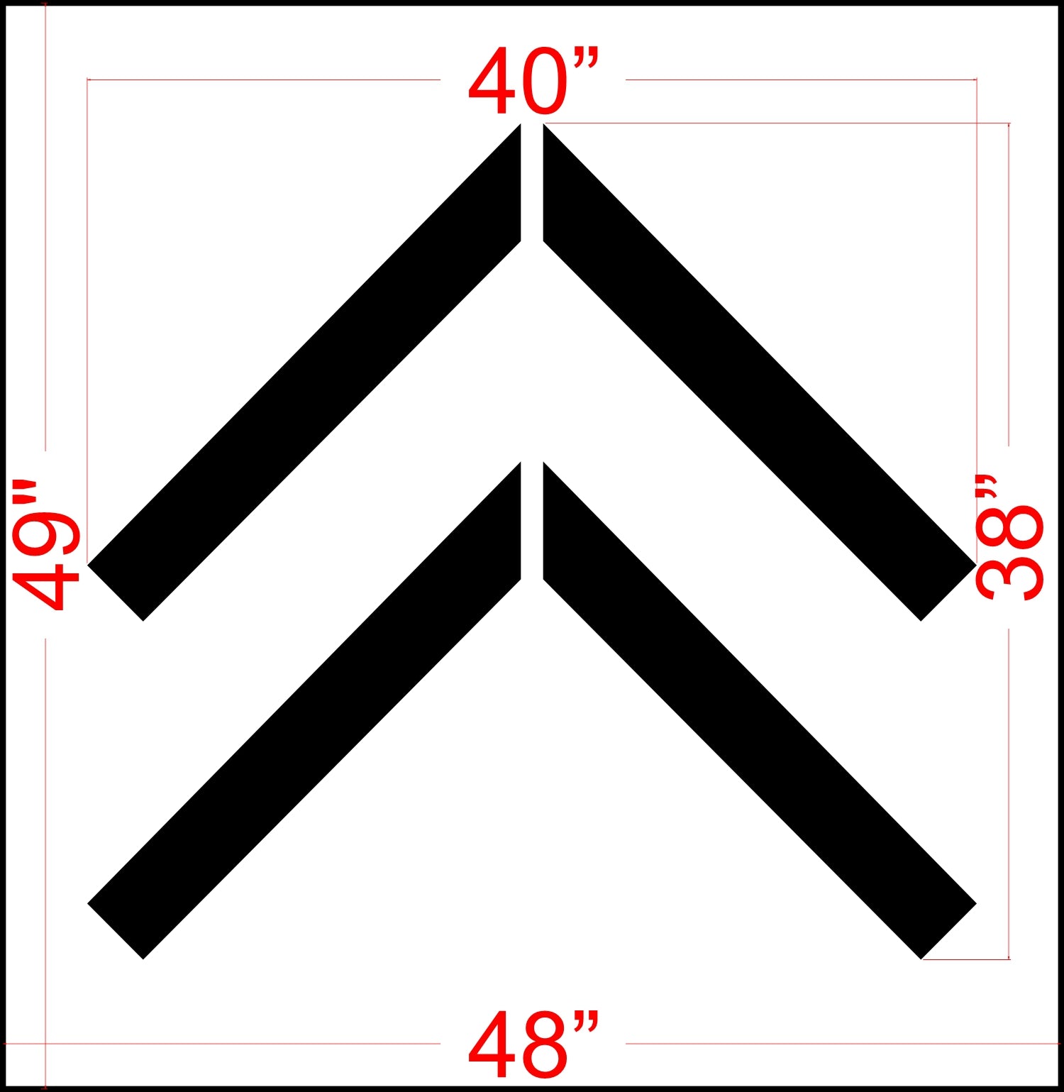This 38 inch New York DOT Bike Lane Chevron stencil is optimal for guiding bikers towards the lane's direction. These are made specifically to meet the specifications for the Department of Transportation's Manual on Uniform Traffic Control Devices or MUTCD. All 1-800-Stencil’s are professional quality and made from either Light or Pro-Grade LDPE, Aluminum, or optional UHMW plastic to all last for years of professional use.