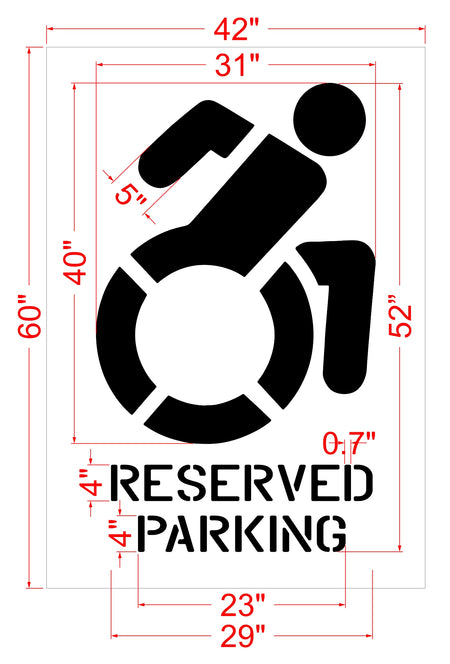 This is a 40 inch NYSDOT Handicap Symbol and with 4" wording 'RESERVED PARKING' below the symbol. It is a medium sized handicap symbol that meets ADA (Americans with Disabilities Act) standards and some state & local standards. This stencil symbol and wording measure 51" tall together. This Handicap Stencil is good for medium to large handicap marking areas. All 1-800-Stencil’s are professional quality and made from either Light or Pro-Grade LDPE, Aluminum, or optional UHMW plastic to all last for years of professional use.