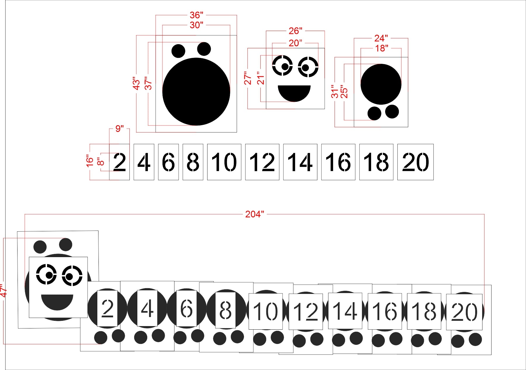 47"x204" Caterpillar Numbers Stencil SKU: 0575-062
