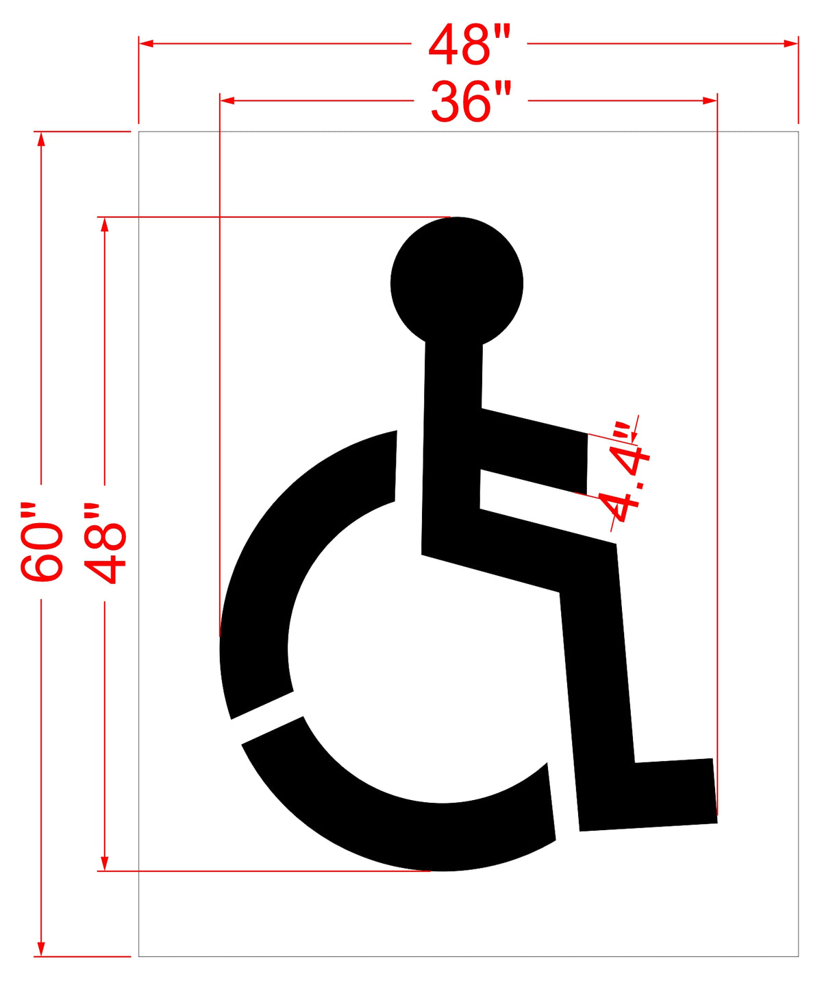 The 48 inch Handicap Stencil is a large handicap that is commonly used in modern family-friendly parking spaces, it communicates accessibility for parents with children and individuals with disabilities. This 48 inch Handicap Stencil is good for large handicap marking areas when it meets the state and local standards. All 1-800-Stencil’s are professional quality and made from either Light or Pro-Grade LDPE, Aluminum, or optional UHMW plastic to all last for years of professional use.