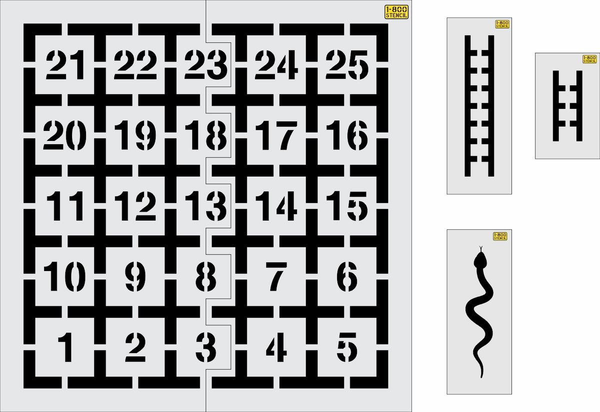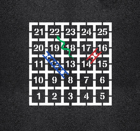 Calling all schools and playground enthusiasts! Transform your playground into a vibrant and engaging space with our 62 by 62 inch "Snakes and Ladders" Stencil! With our wide selection of playground stencils, you can bring your school playground to life. From hopscotch and animal tracks to educational games, our stencils offer endless possibilities to foster active play and learning. Our playground stencils are specifically designed with schools in mind, meeting safety standards and encouraging physical activity, social interaction, and imagination. All 1-800-Stencil’s are professional quality and made from either Light or Pro-Grade LDPE, Aluminum, or optional UHMW plastic to all last for years of professional use.