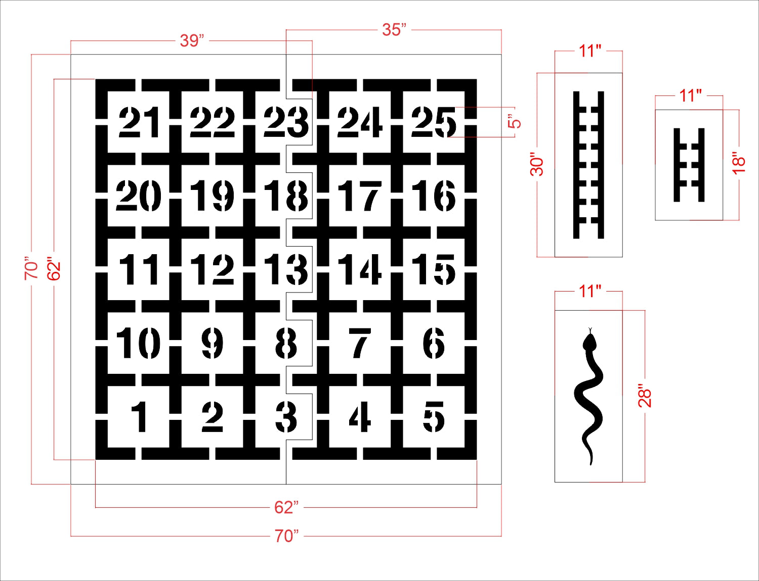 62"x62" Snakes and Ladders Stencil