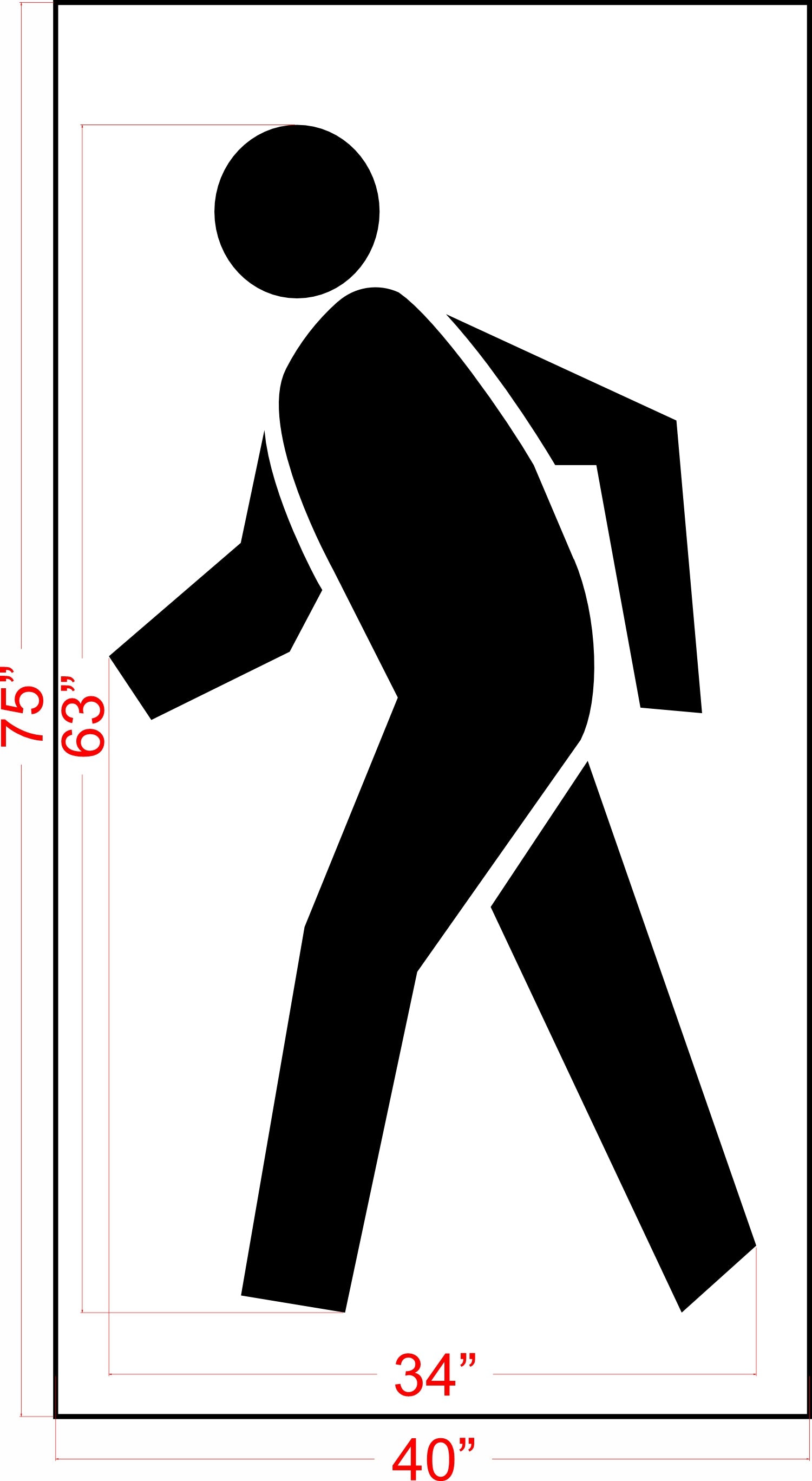 This 63 inch Seattle DOT Pedestrian Logo Stencil is large enough to be placed in parking lots and be visible to drivers along with pedestrians. This 63 inch Seattle DOT Pedestrian Logo Stencil is made specifically to meet the specifications for the Department of Transportation's Manual on Uniform Traffic Control Devices or MUTCD. The 63" Pedestrian Logo Stencil has a width of 34" and a height of 60" along with our standard 3" of overspray. All 1-800-Stencil’s are professional quality and made from either Light or Pro-Grade LDPE, Aluminum, or optional UHMW plastic to all last for years of professional use.