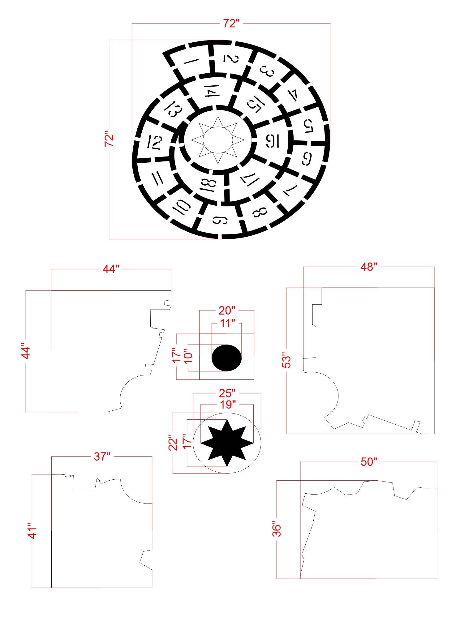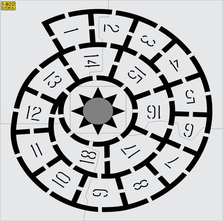 72"x72" Spiral Sun Hopscotch Stencil SKU: 0575-036