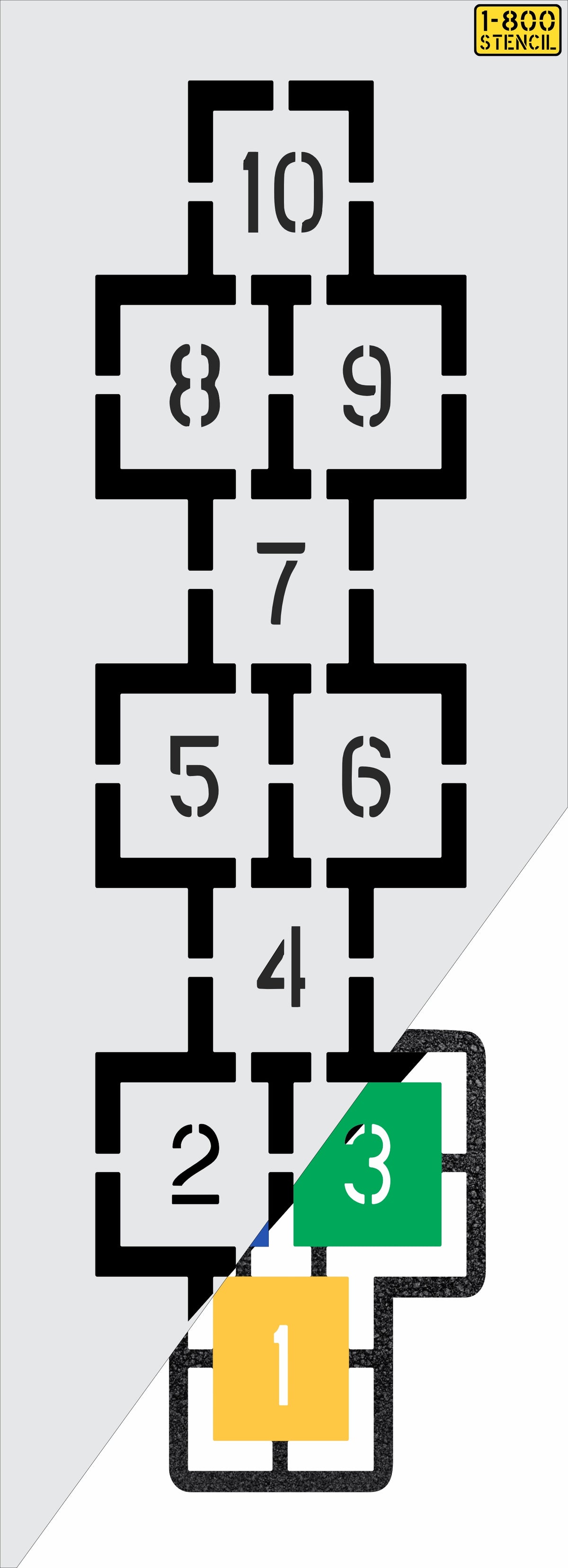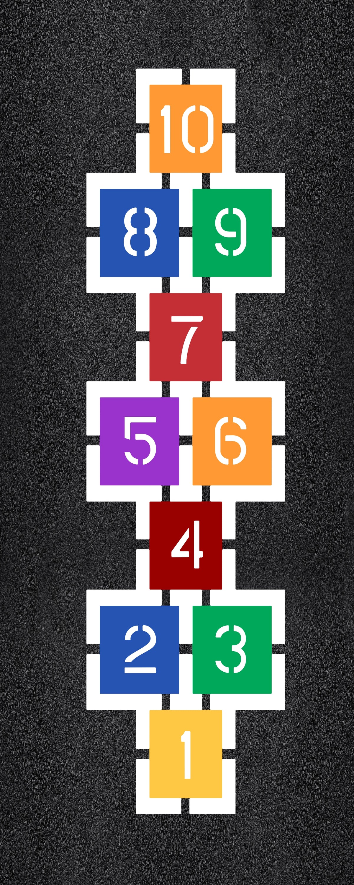 Calling all schools and playground enthusiasts! Transform your playground into a vibrant and engaging space with our 90 by 24 inch "Hopscotch" Stencil! With our wide selection of playground stencils, you can bring your school playground to life. From hopscotch and animal tracks to educational games, our stencils offer endless possibilities to foster active play and learning. Our playground stencils are specifically designed with schools in mind, meeting safety standards and encouraging physical activity, social interaction, and imagination. All 1-800-Stencil’s are professional quality and made from either Light or Pro-Grade LDPE, Aluminum, or optional UHMW plastic to all last for years of professional use.