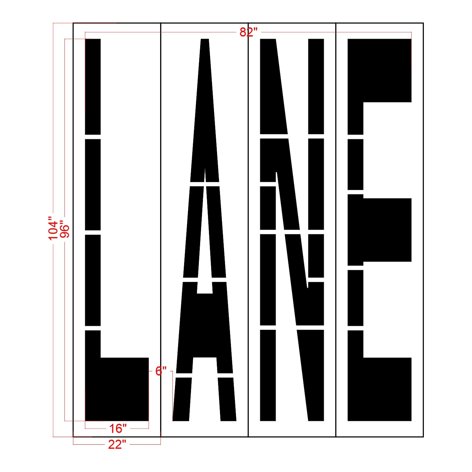 The 96 inch Florida DOT "LANE" stencil is great for painting along large parking lots and roadways. This stencil is made specifically to meet the specifications for the Department of Transportation's Manual on Uniform Traffic Control Devices or MUTCD. All 1-800-Stencil’s are professional quality and made from either Light or Pro-Grade LDPE, Aluminum, or optional UHMW plastic to all last for years of professional use.
