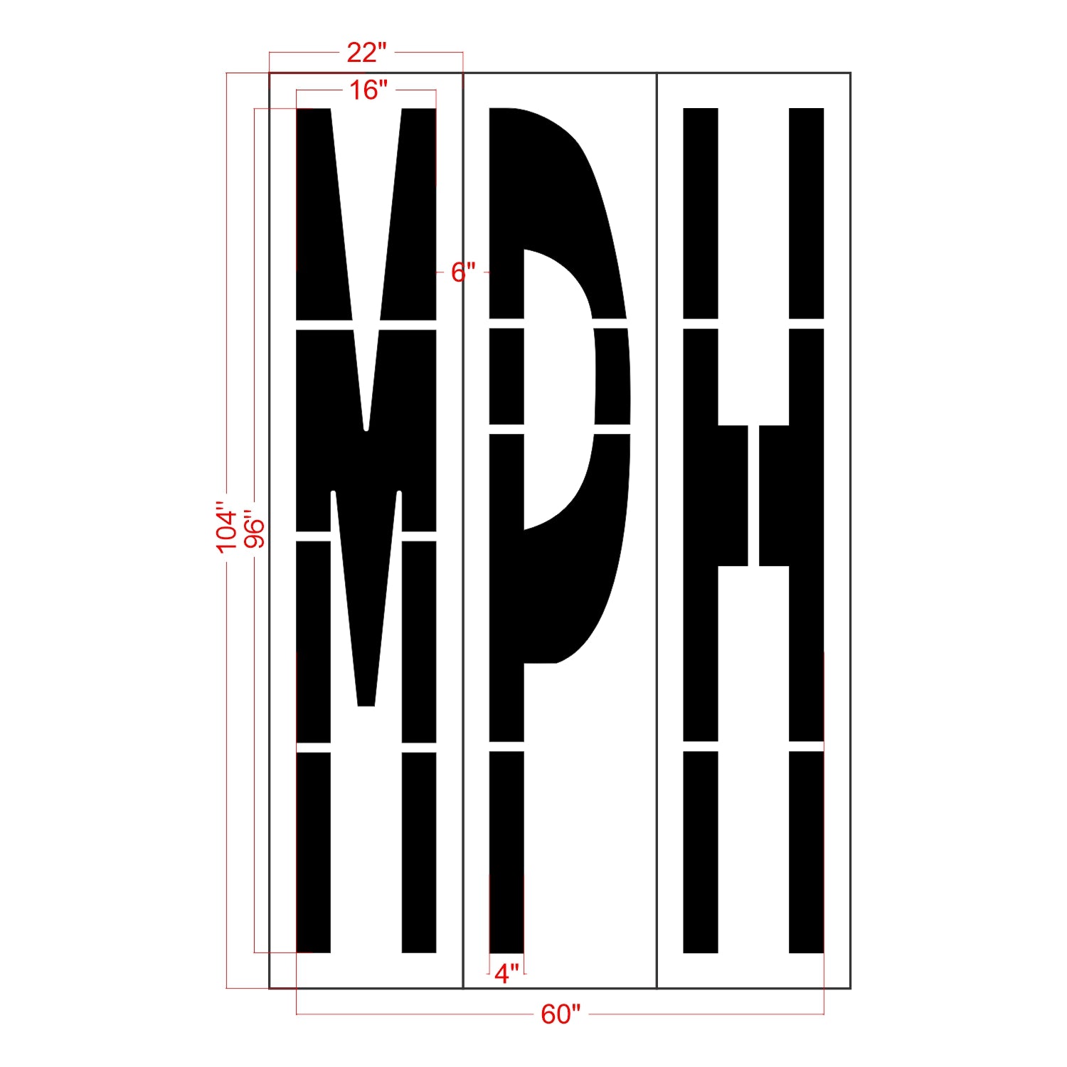 The 96 inch Florida DOT "MPH" stencil is great for painting along large parking lots and roadways. This stencil is made specifically to meet the specifications for the Department of Transportation's Manual on Uniform Traffic Control Devices or MUTCD. All 1-800-Stencil’s are professional quality and made from either Light or Pro-Grade LDPE, Aluminum, or optional UHMW plastic to all last for years of professional use.