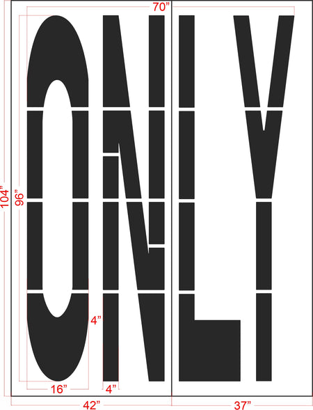This 96 inch San Antonio DOT "ONLY" Stencil is designed specifically to meet the specifications for the Department of Transportation's Manual on Uniform Traffic Control Devices or MUTCD. This stencil can be paired with other words or arrows to create a different message. All 1-800-Stencil’s are professional quality and made from either Light or Pro-Grade LDPE, Aluminum, or optional UHMW plastic to all last for years of professional use.