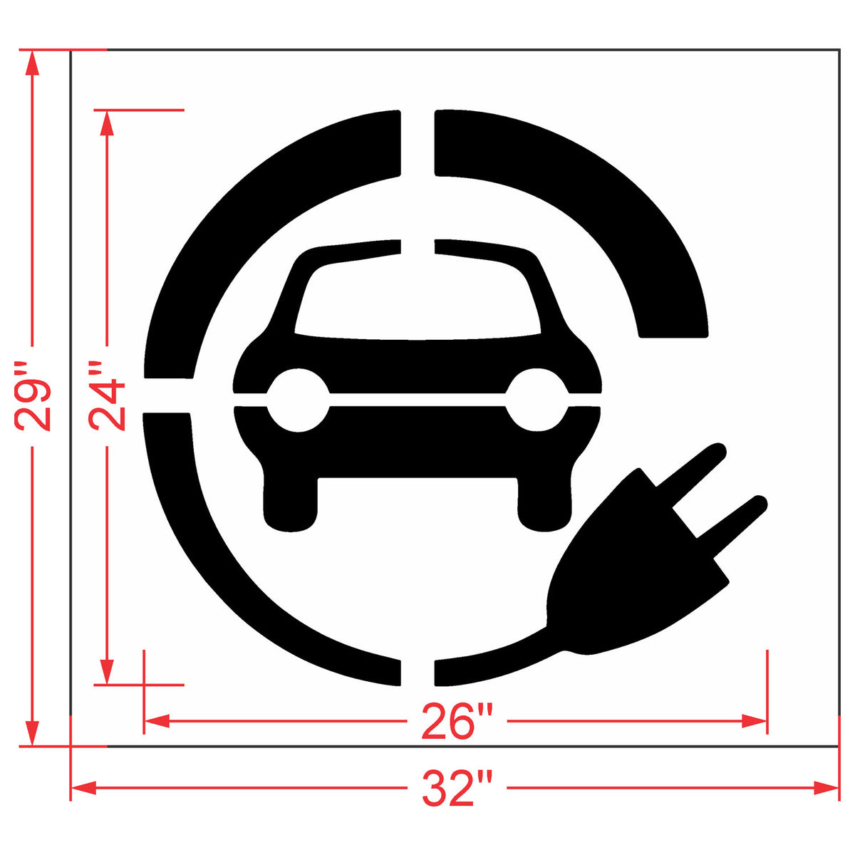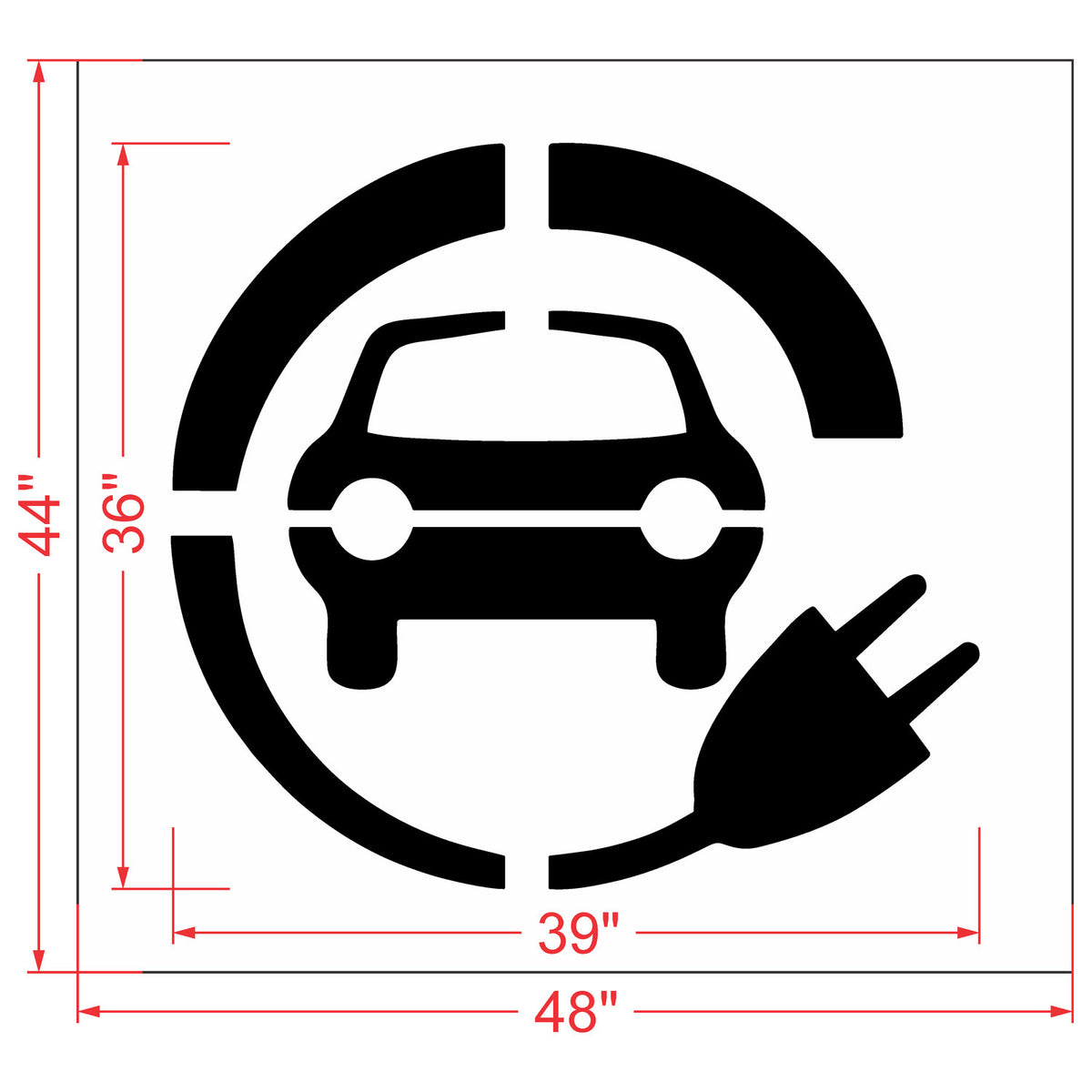 This Electric Car w/ plug Stencil - (24"-48") is very similar to the Walgreens Electric Car stencil but is smaller and does not meet their specification. The Electric Car Stencil is great for designating electric car parking spots. It comes in different sizes so you can paint it anywhere. All 1-800-Stencil’s are professional quality and made from either Light or Pro-Grade LDPE, Aluminum, or optional UHMW plastic to all last for years of professional use.