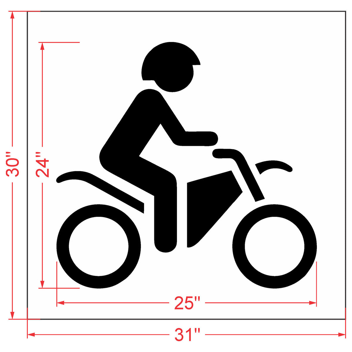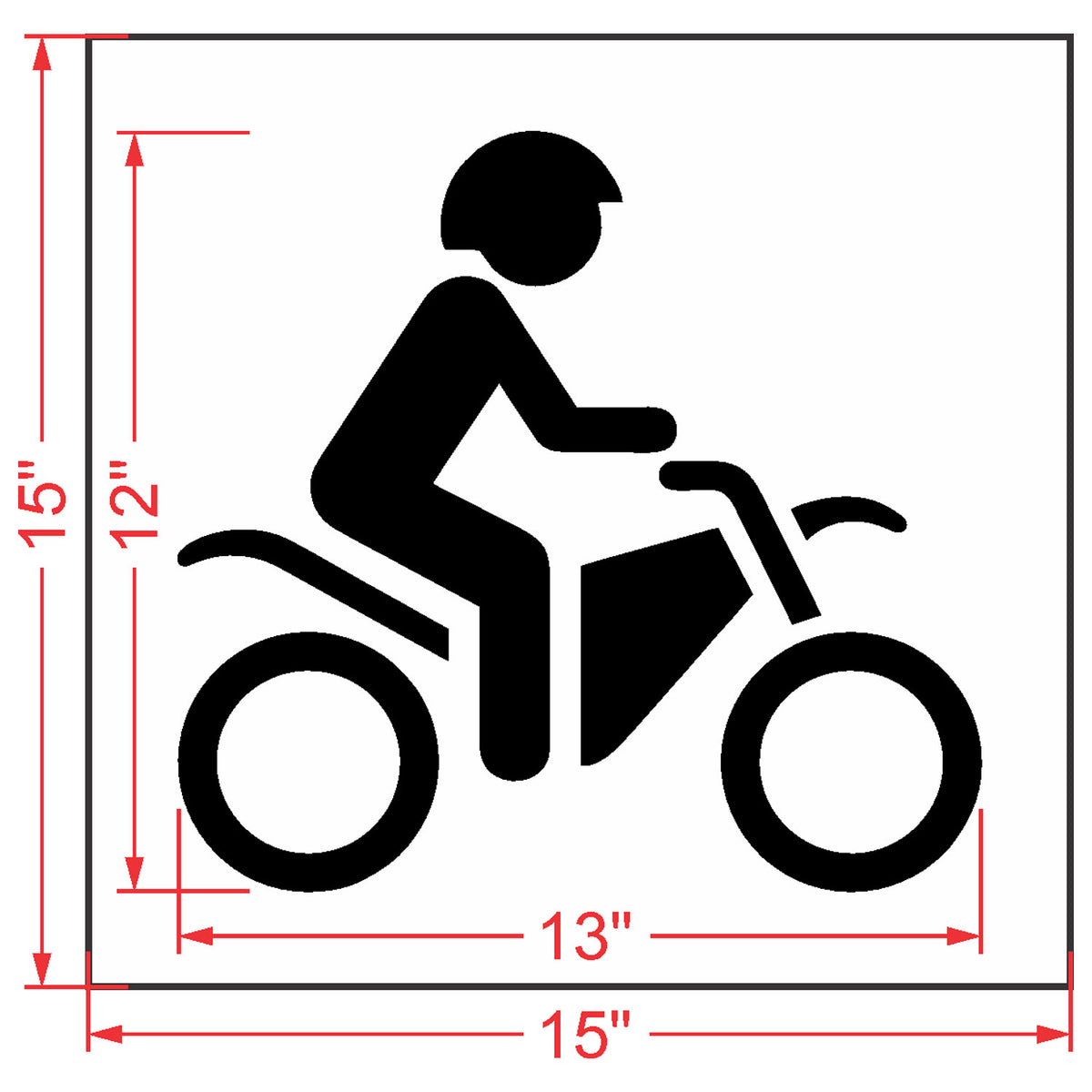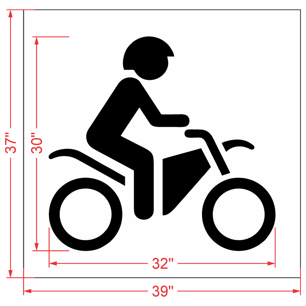 This motorbike symbol stencil is optimal for preserving parking areas for motorbikes. They are visible considering the simple illustration for drivers to recognize and concede these parking spaces to motorcycles. All 1-800-Stencil’s are professional quality and made from either Light or Pro-Grade LDPE, Aluminum, or optional UHMW plastic to all last for years of professional use.
