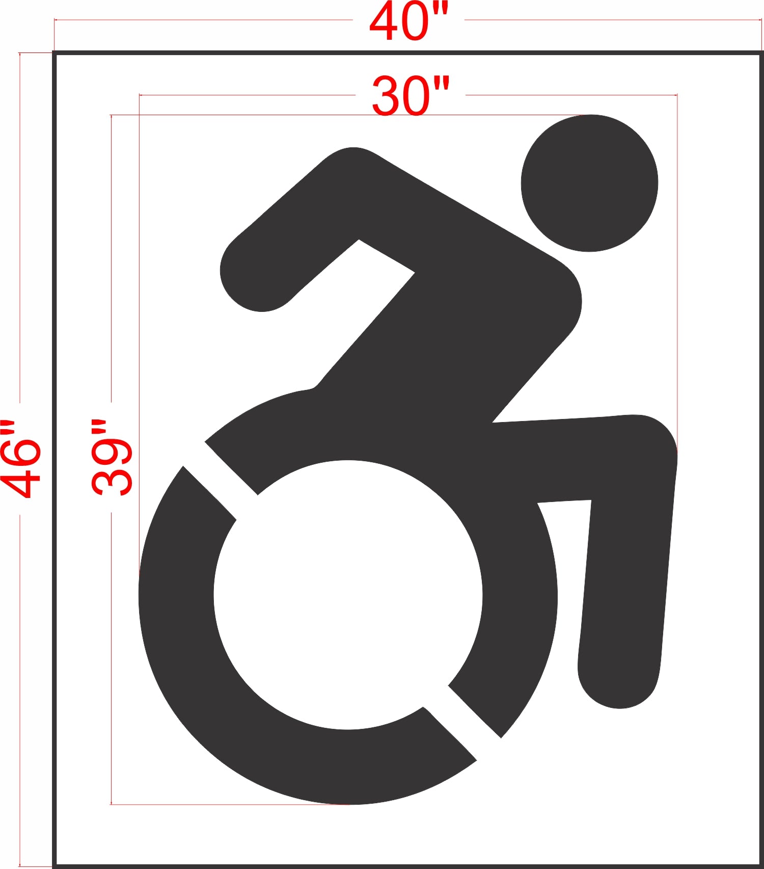 Designed by the Accessible Icon Project, this new handicap stencil design is now the new DOT spec for New York State. As the first state to adopt the "Accessible Icon", New York is paving the way for a national change to a more active symbol. The stencil is 39 inch tall, just as the standard symbol. It fits nicely on a 42" x 42" background (sold separately) or painted all by itself. All 1-800-Stencil’s are professional quality and made from either Light or Pro-Grade LDPE, Aluminum, or optional UHMW plastic to all last for years of professional use.